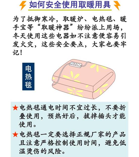 天气寒冷,除了穿衣保暖之外,各种取暖设备也开始投入使用。那么,在使用这些取暖设备时需要注意些什么呢?我们一起来学习如何安全取暖!
