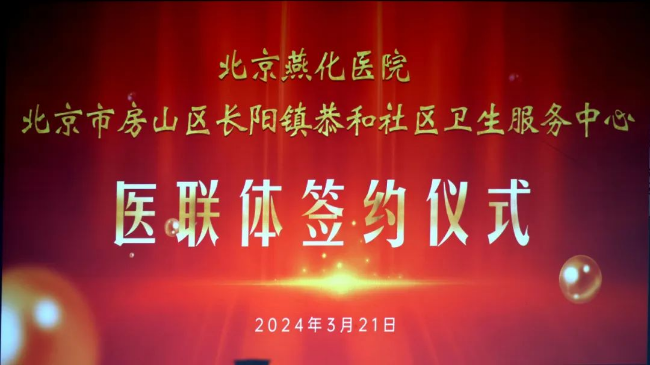 3月21日下午,北京燕化医院与北京市房山区长阳镇恭和社区卫生服务中心(以下简称恭和社区卫生服务中心)紧密型医疗联合体签约仪式在恭和社区卫生服务中心会议室如期举行。