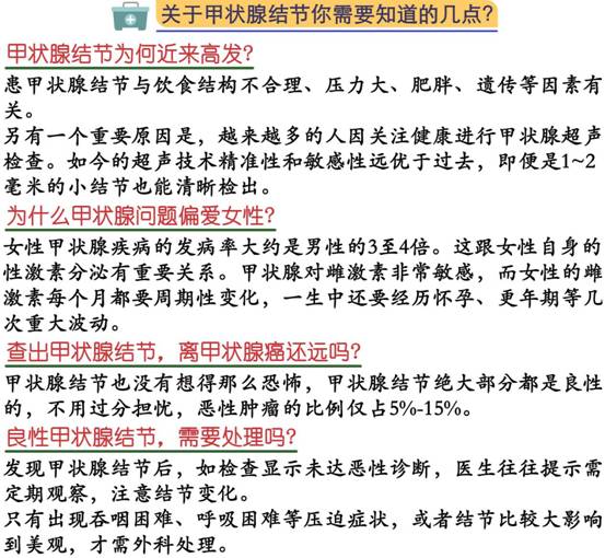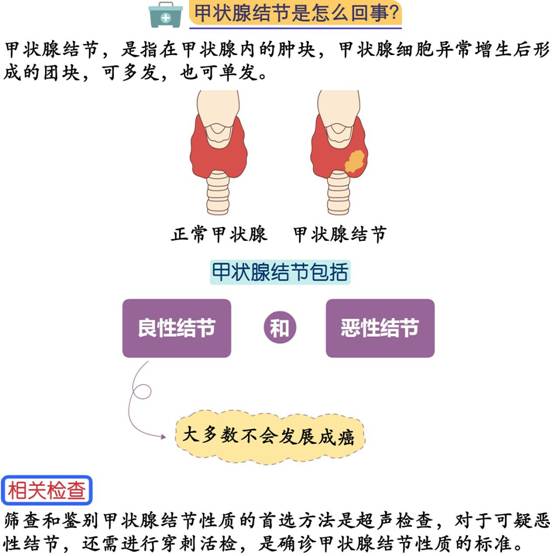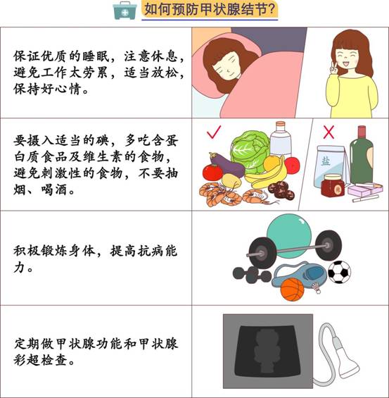 如果体检查出甲状腺结节,请不要紧张,前往正规医院的甲状腺外科或者内分泌科,按医嘱规范接受治疗,同时注意调整不良的生活习惯,就可以拥抱美好的未来。