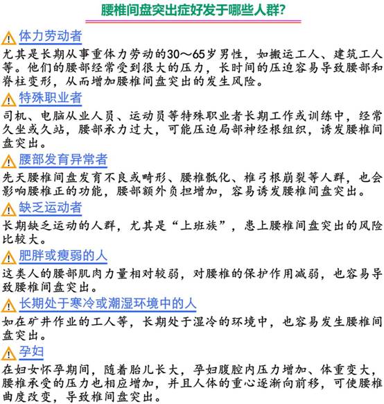 腰椎间盘突出本应是一种“中老年病“,可现在不难发现越来越多的年轻人,成为了患病群体中的一员。长期久坐、频繁弯腰、长时间弯腰负重、腰椎受到外伤,都是导致腰椎间盘突出的常见诱因,对于腰椎间盘突出症患者来说,不仅要积极接受治疗,更要在日常生活中加强护理。今天,就一起跟小编来了解一下腰椎间盘突出吧。