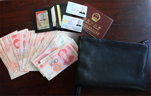 当大家打开手包检查时,发现包内有大量现金及户口本、老年证等物品。通过老年证上的联系电话,往家里打电话,家里一直无人接听。护士长立即将手包交到医院保卫科,请保卫科协助查找。医院保卫科在警务站民警的监督下,当场清点手包,内有现金共计9600余元,户口本一个,身份证、老年卡各一张和急诊就诊单据等。