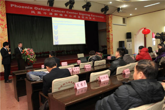 最后,陈前进总经理宣布签约仪式正式开始,由凤凰医疗集团董事、副总经理、医疗总监徐泽昌作为代表与英国David Kerr教授签订了成立凤凰牛津肿瘤中心协议书。