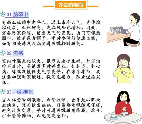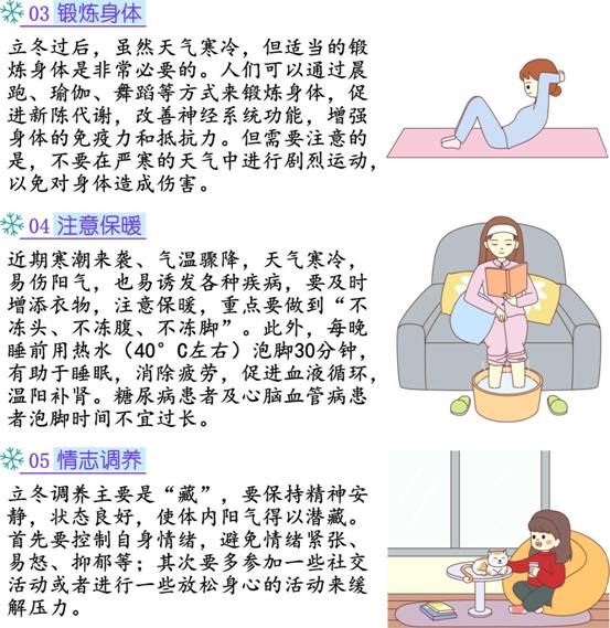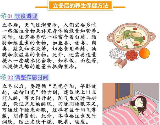 立冬过后,意味着冬季正式来临,天地万物活动都趋向休止,准备蛰伏过冬。自然界也表现为阴盛阳衰,此后气温降低、寒气袭人,阳气潜藏、阴气盛极,一些疾病也将进入高发期。今天我们一起了解一些立冬后的养生知识。