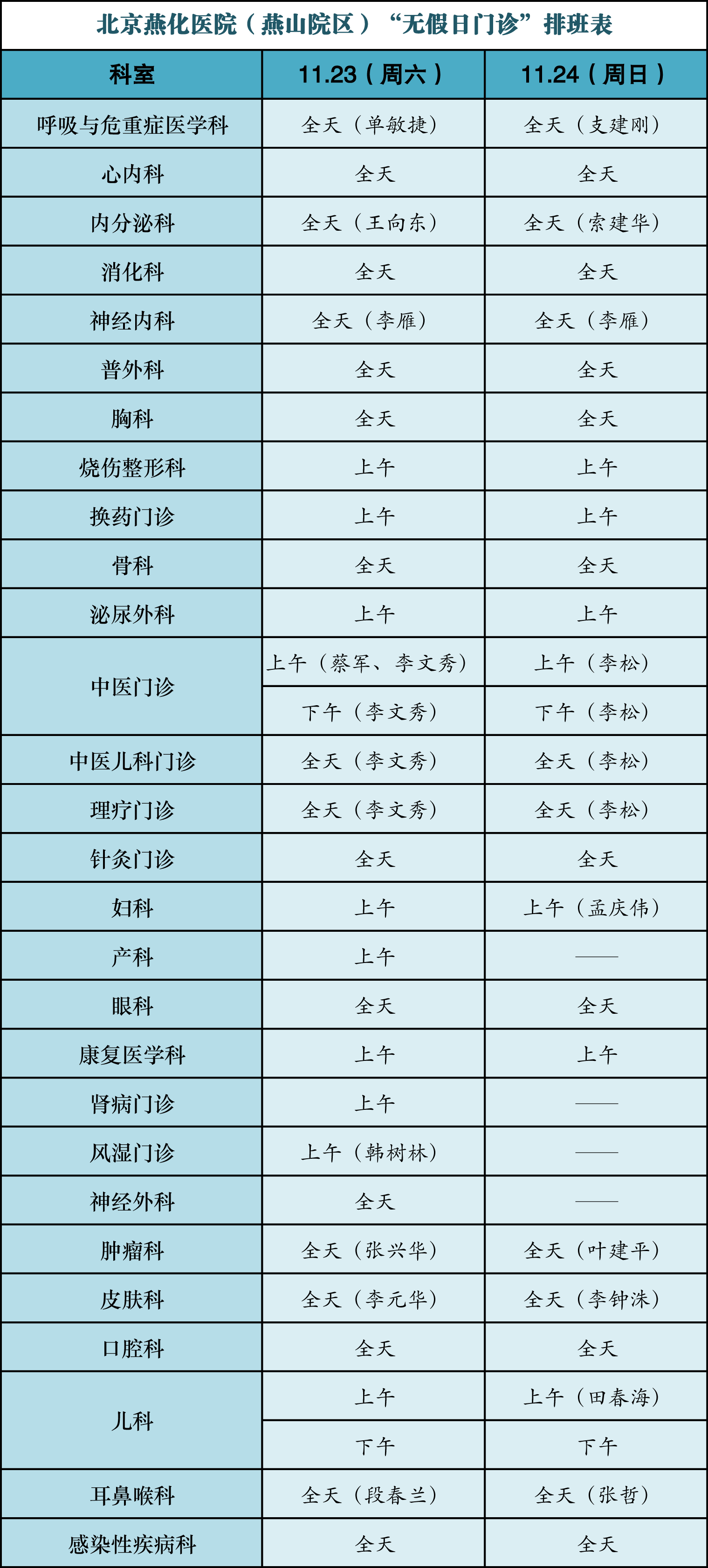 现将本周末(2024年11月23日-24日)“无假日门诊”安排表公布如下: