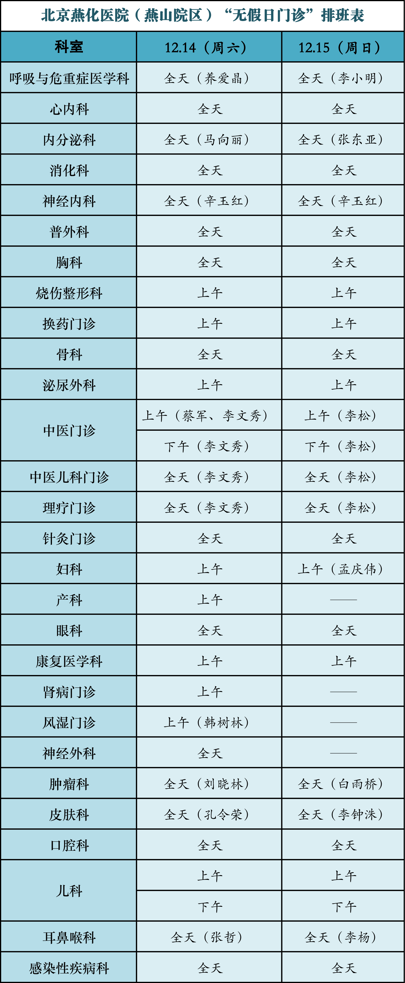 现将本周末(2024年12月14日-12月15日)“无假日门诊”安排表公布如下:
