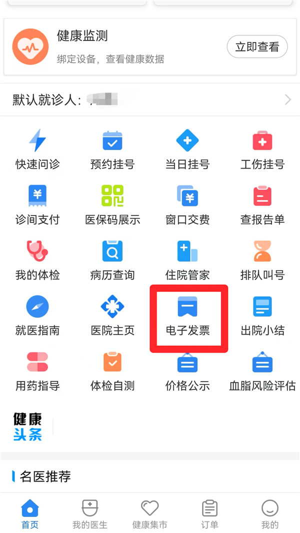 2、在“首页”打开“电子发票”。