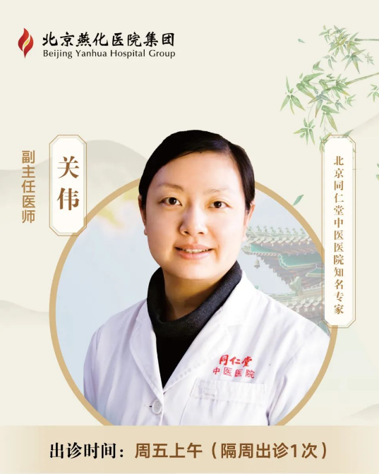 预约方式:微信小程序搜索“北京燕化医院”-预约挂号-北京燕化医院-中医科-中医门诊,找到“关伟”,预约即可。