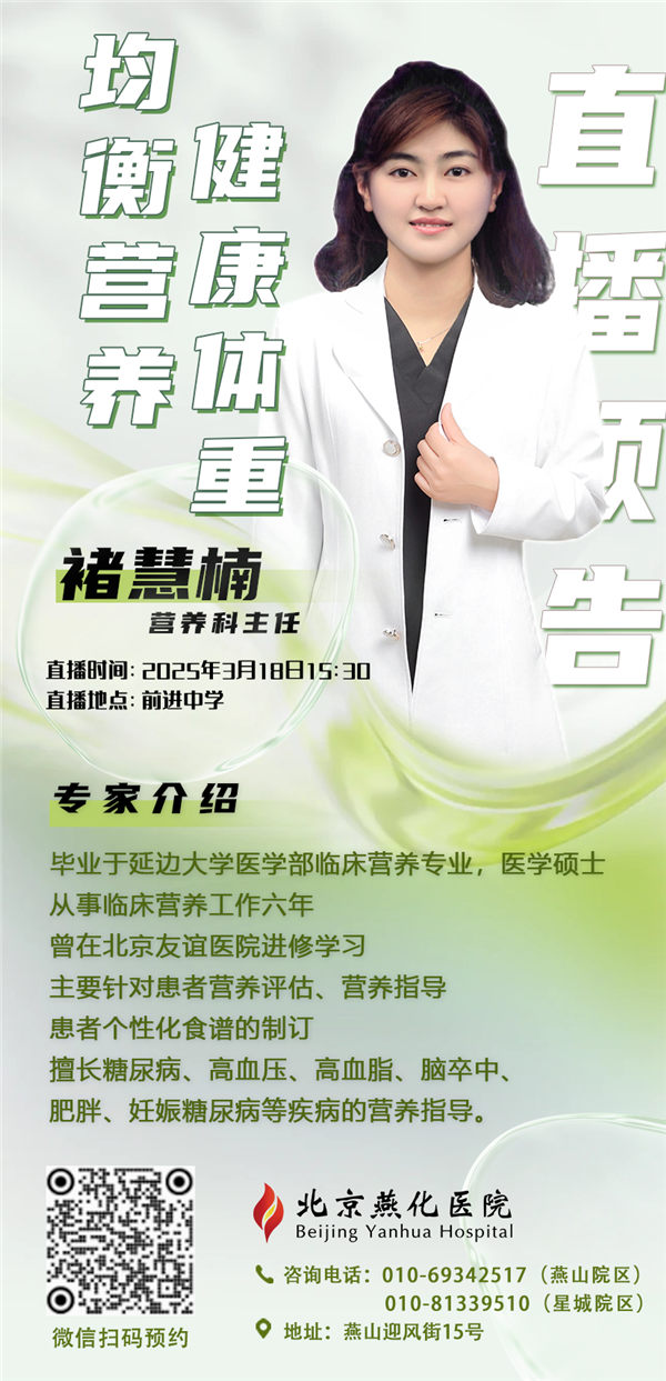 北京燕化医院营养科主任@褚慧楠将通过直播间教会您: