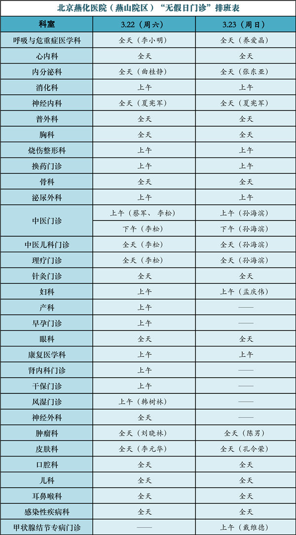 现将本周末(2025年3月22日-23日)“无假日门诊”安排表公布如下: