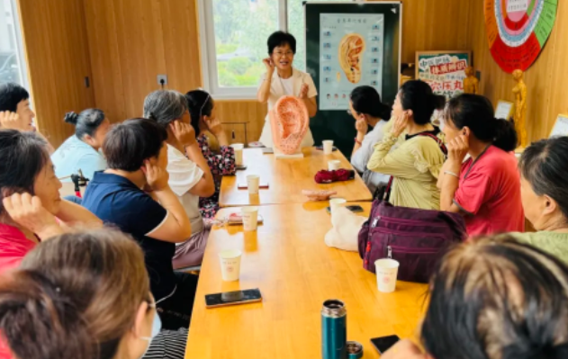 活动伊始,孙老师凭借扎实的专业功底与丰富的临床经验,深入浅出地讲解耳朵与身体各部位的对应关系 。从耳朵上的“心区”对应情绪调节,到“脾区”关联消化功能,一个个看似微小的穴位,竟藏着调节全身健康的密码。现场听众纷纷拿出手机拍照记录,不时举手提问,气氛热烈。