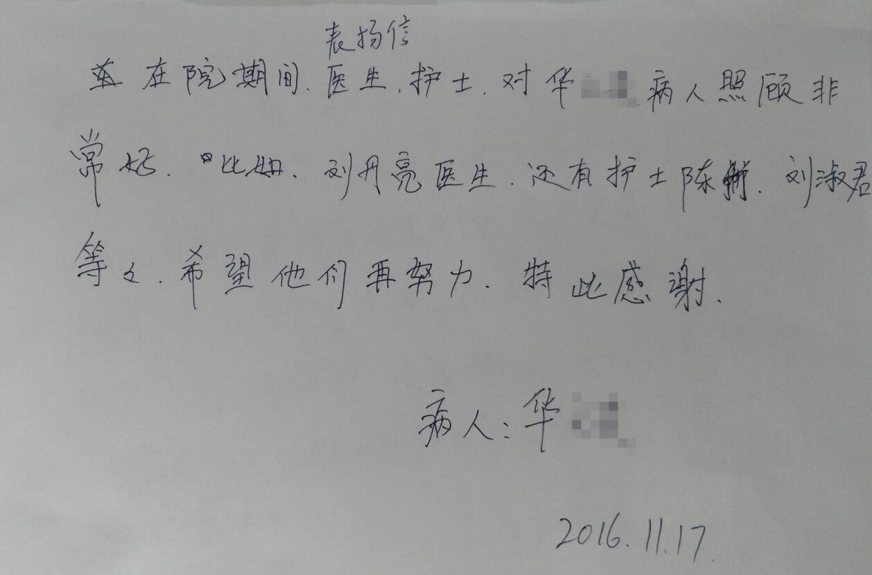 上一篇: 患者池××感谢心内科护士赵敏以及全体医护人员