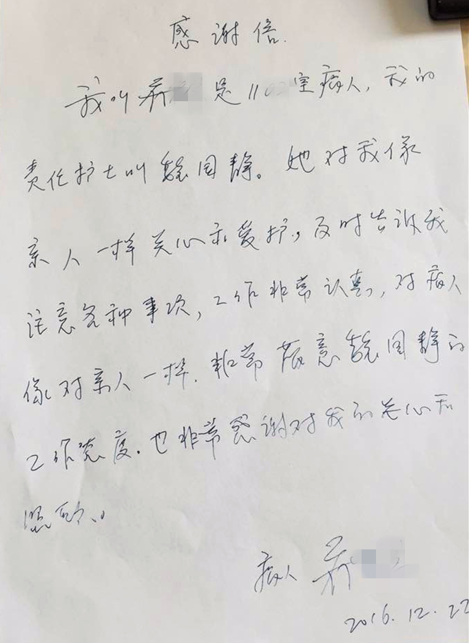 下一篇: 患者周女士表扬康复科护士李惠认真负责,护理周到