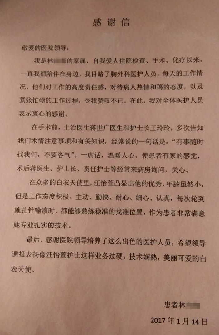 上一篇: 患者沈先生及家属感谢心内科医护人员医术精湛、医德高尚