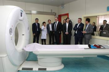 在北京燕化医院执行院长俞红霞教授的陪同下,Genesis Care公司创始人兼首席执行官丹·柯林斯一行参观了医院的CT、MRI、DSA等高端设备,医院便民服务措施银医通系统、胶片自助打印系统,慢病管理系统凤凰云健康管理平台,以及肿瘤科及凤凰牛津肿瘤中心基地等。参观团与医院领导团队进行了详细深入的业务交流,并对燕化医院的管理水平、设备设施及患者服务表示赞赏和肯定。