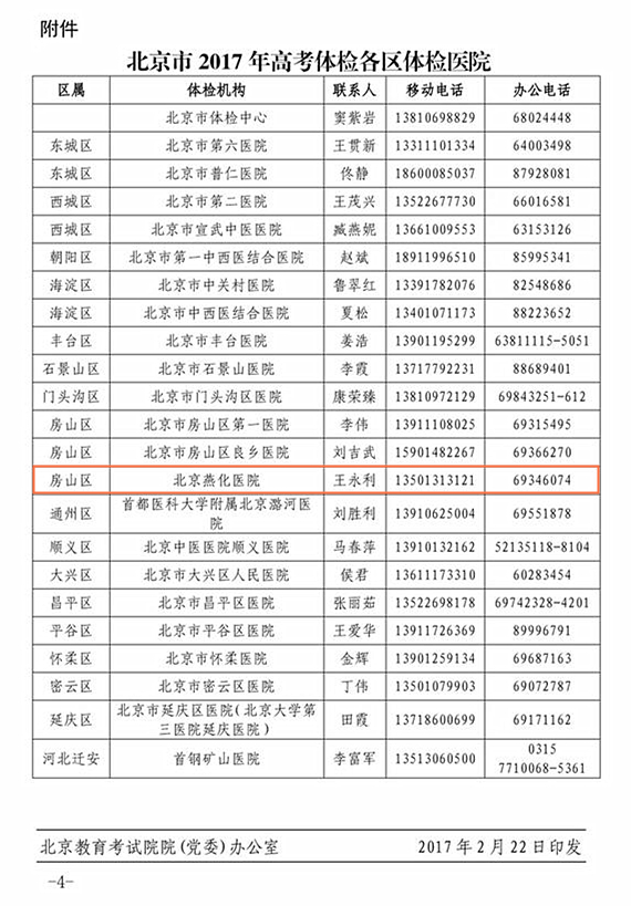 北京燕化医院预祝广大学子顺利通过体检!