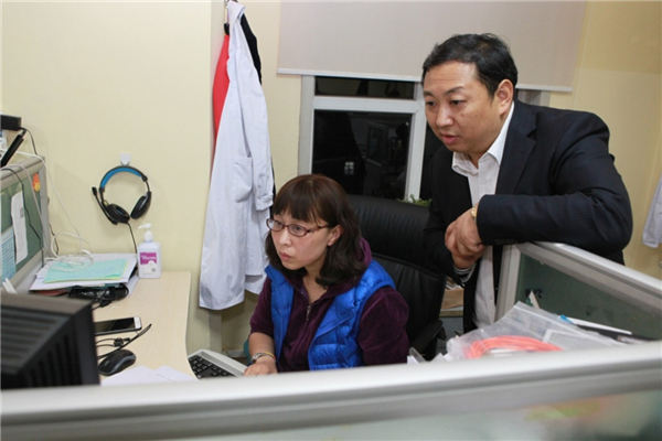 参观完总院,市卫计委领导一行人乘车前往化一门诊部进行视察。在化一门诊部查看收费挂号系统、全科诊室和功检室等。燕化医院金诺副总经理就化一门诊部整体情况进行了详细讲解。