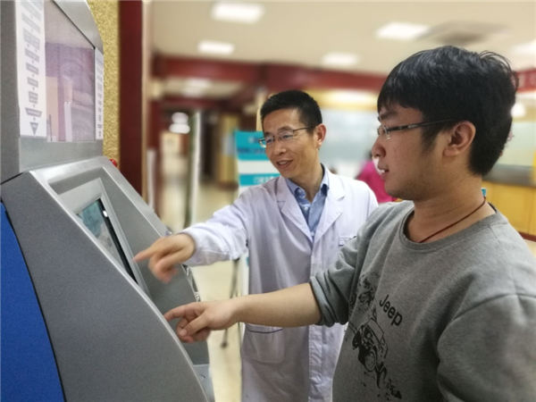 高小俊委员检查医院自助挂号缴费系统。