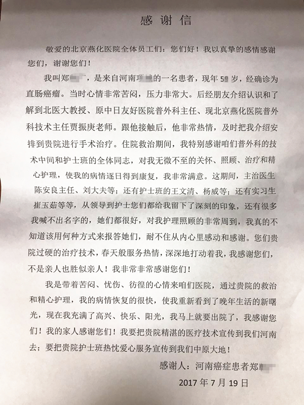 下一篇: 患者张先生感谢内分泌科医护人员认真负责、尽心尽力