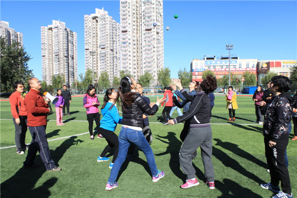 活动分为两部分,第一部分是在星城社区内开展团队协作游戏,第二部分是前往大兴区南海子公园进行万米健步走。