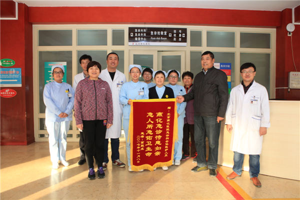一大清早,正是上班医生查房、护士交接班的时候,家住燕山杰辉苑的贾先生带着妻子穿梭于医院的门诊楼和病房,把两面锦旗分别送到了急诊和心内科。