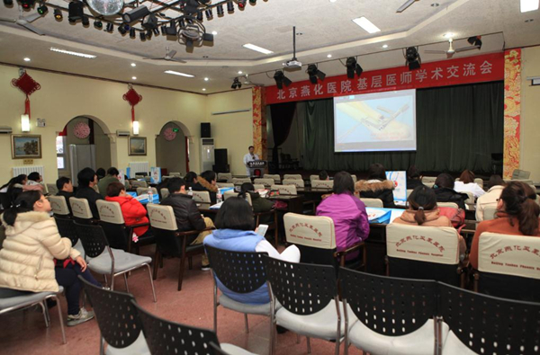 11月23日下午2:00,北京燕化医院基层医师学术交流会于学术报告厅举行。北京燕化医院普外科医生何永健和刘英普、肿瘤微创介入科主任陈力强、骨科医生毛成及房山区各医院、各乡镇卫生院50多名基层医师共同参加了本次学术交流。