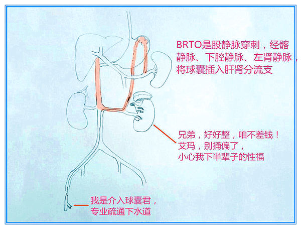 北京燕化医院肿瘤微创介入科陈力强主任亲自绘制漫画,带您一起解读一下经球囊导管阻塞下逆行闭塞静脉曲张术(BRTO)。