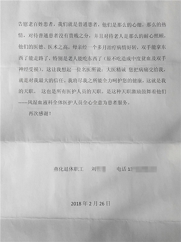 下一篇: 患者周先生及家属感谢康复科医德高尚,关怀备至