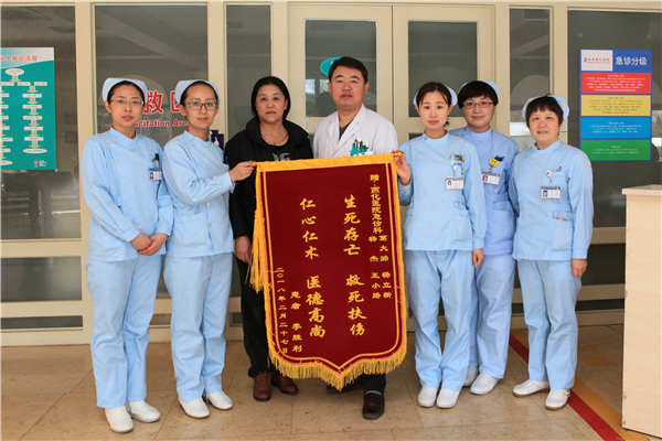 3月1日下午,该患者的妻子手持一面锦旗来到了急诊科。一见葛大夫,便难掩激动之情,紧紧握着葛大夫的手说道:谢谢您救了我们夫妻二人,这面锦旗早就该送了……